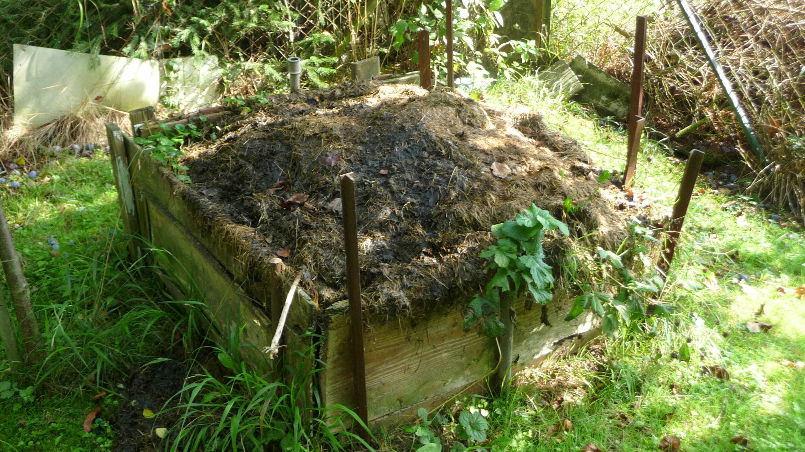 On prend une fourche, ou n’importe quel outil qui permet de pas mettre les mains dedans, et on remue pendant 4-5 minutes. Si on l’a pas fait et qu’il y a des strates toutes dures au milieu, là il faut sortir les biceps et remuer très fort pour casser les couches solides (pas rigolo, mais ça se fait) - Il faut le mouiller de temps en temps. Si le compost devient trop sec, les micro-organismes meurent, et ça ne composte plus. Par contre, avec trop d’eau ça peut sentir mauvais (mais ça ne le tue pas) ; il suffit alors d’ajouter des matières sèches dessus et tout rentre dans l’ordre (par exemple de la tonte de pelouse).